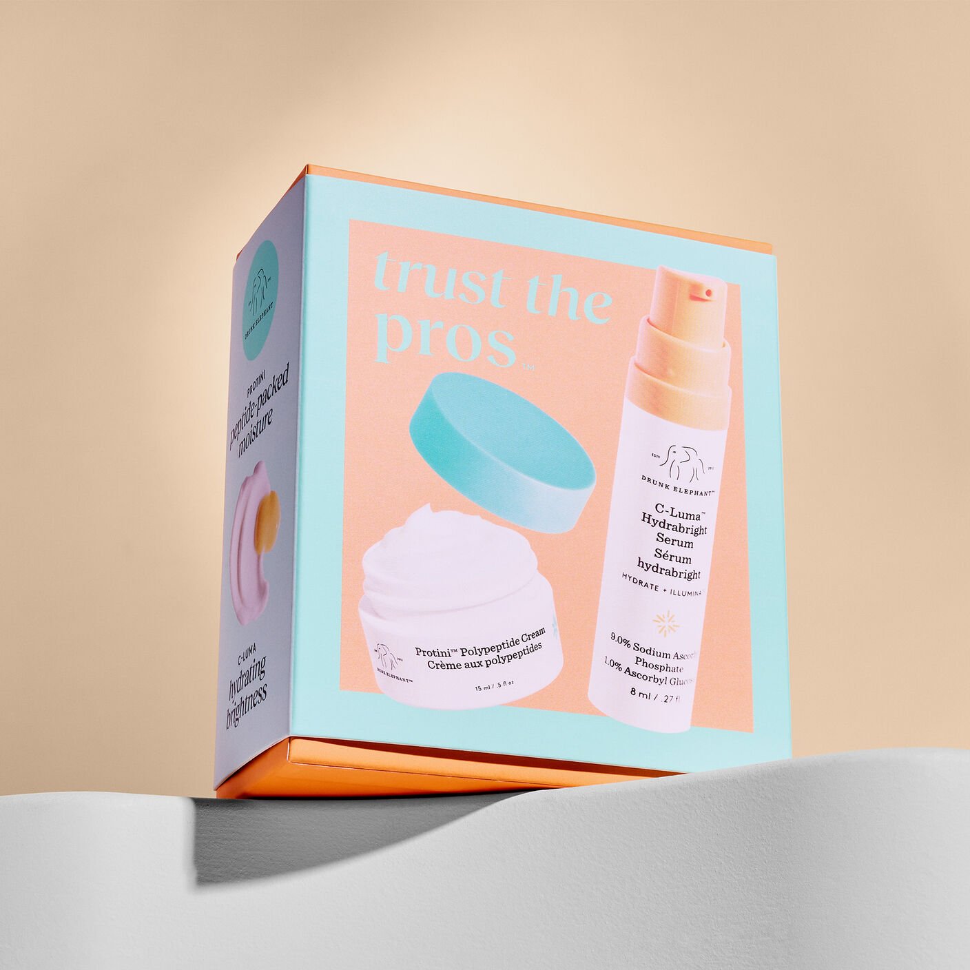 Together, our 10% vitamin C serum and peptide cream visibly firm, hydrate, and brighten skin.